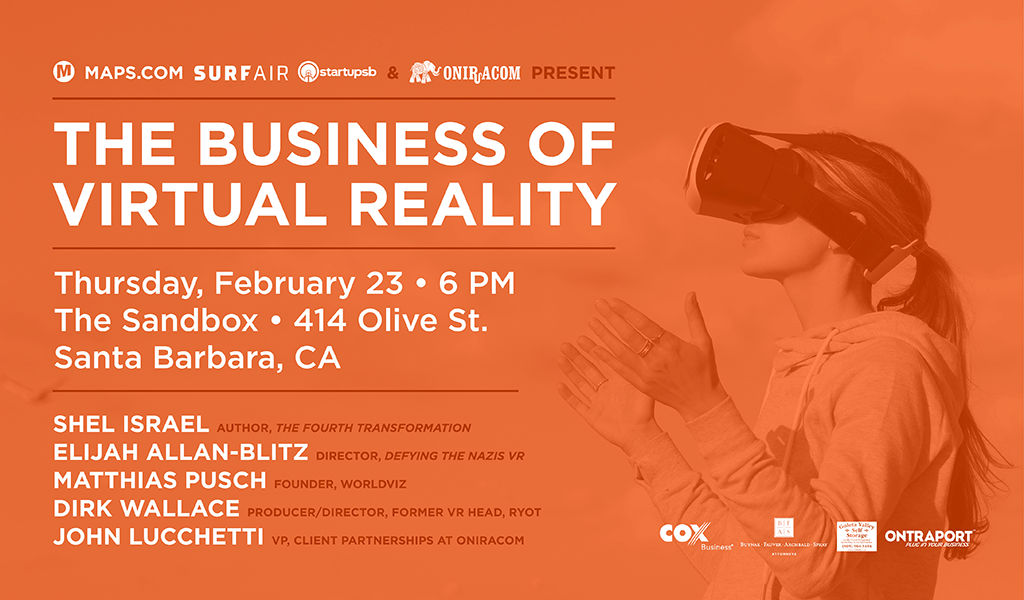 Maps.com, Surf Air, Oniracom and StartupSB present a look at the world of virtual reality.